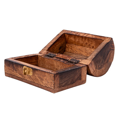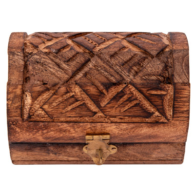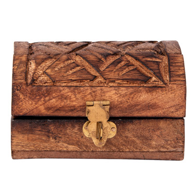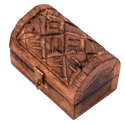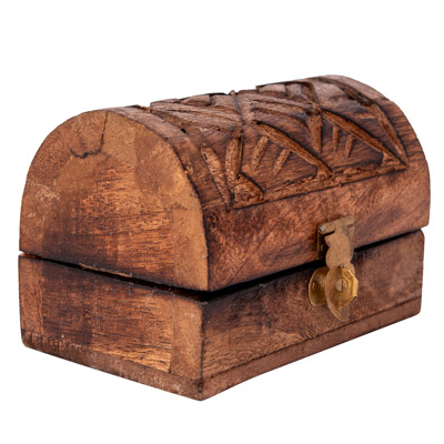 This Carved Wooden Box Looks Like a Pirate’s Treasure Chest – Hinged Lid Has a Clasp to Close and a Carved Design