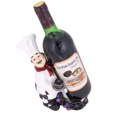 9 Inches High x 7 1/2 Inches Wide Chef and Trolley Wine Bottle Holder