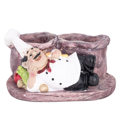 Relaxed Chef Lounging on Base in Front of Two Vegetable Sacks That Hold Salt and Pepper Shakers – Made of Cast Resin with Glass and Metal Shakers – Makes a Cute Decorative Addition to Any Kitchen and a Welcome Gift That the Recipient Can Actually Use