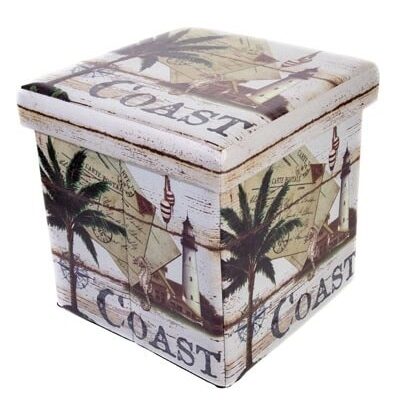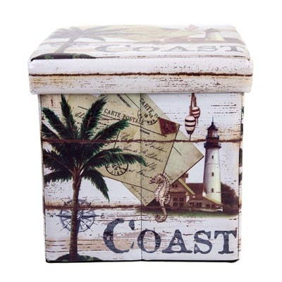 SALE – It’s Very Decorative and Functional, this Coast-Themed Leather-Like Cloth Storage Box has Graphics of Lighthouses, Seashells, Palm Trees, Seahorses, and Buoys – It’s a Furniture Accessory That’s a Place to Tuck Away Unsightly Clutter – Storage Cube Folds Flat When Not In Use