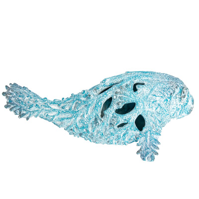 Here’s a Unique Table Top Figurine of a Manatee That is Really Made of Polystone But Looks Like It’s Made from Undersea Coral – Finished in an Touch of Blue Highlights for an Artistic Touch, It’s a Interesting Coastal Accent