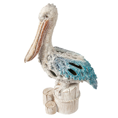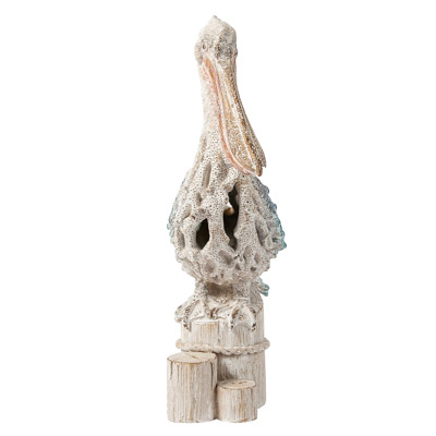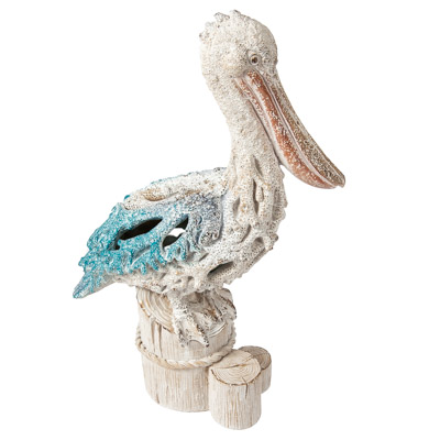 Here’s a Pelican Standing on Posts Artistically Designed to Look Like He’s Made of Undersea Coral – It’s Not Coral, It’s Polystone Colored Off-White with Blue Tinted Highlights – But it is a Fine-Looking Nautical or Coastal Decoration to Make You Feel Your Down by The Docks