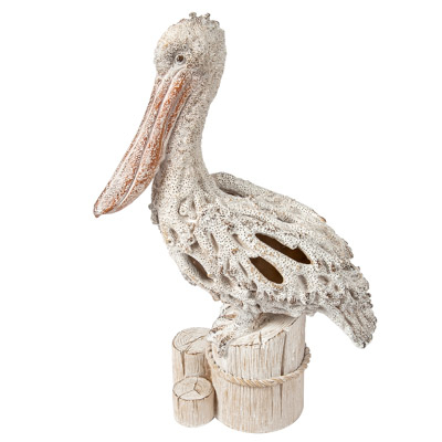 This Decorative Pelican Standing on Posts is Meant to Look Like He’s Made of Undersea Coral, but He is Actually Made of Polystone – Finished in an Off White Color to Match Real Coral to Bring That Nautical or Coastal Feel Anywhere He Lands, Without the Salt Air and Fish Smell, Of Course