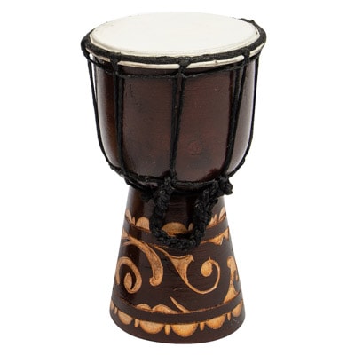 Unique and Highly Decorative Replica of African Djembe Drum – Goblet Shaped Drum has Leather Covering at Top with Cloth Rope Trim and Rope Handle and Real Etchings Carved into Base and Can Really Be Played as a Musical Instrument