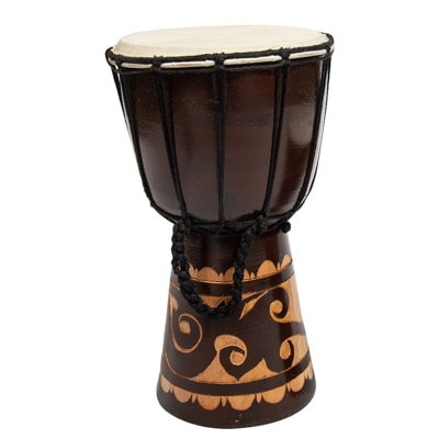 Unique, Decorative Reproduction of a Tribal African Djembe Drum That Can Actually Be Used as a Drum – There’s a Leather Covering at Top of Goblet Shaped Drum with Cloth Rope Trim and Rope Handle and Etchings Carved into Base