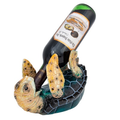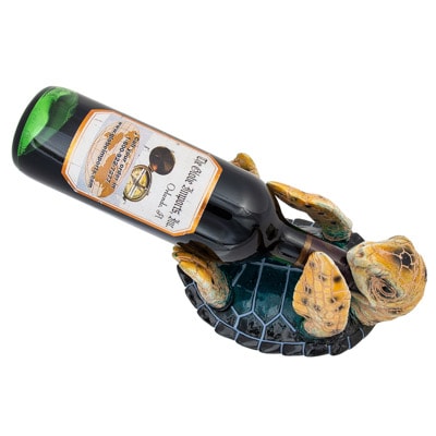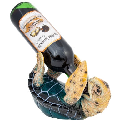 Made of Polystone with a Shiny Finish, Here’s a Drinking Sea Turtle Wine Bottle Holder – This Thirsty Sea Turtle Holds the Bottle with His Flippers and Holds the Mouth of the Bottle in His Mouth – A Wine Accessory or Gift Item with a Seashore Flavor (Shown with Bottle Not Included)