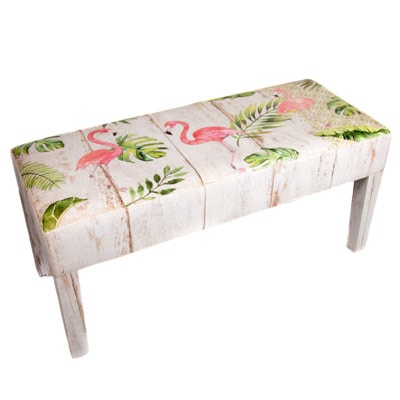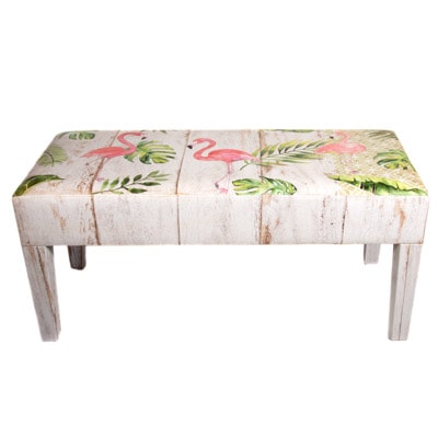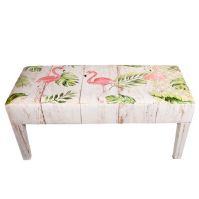Images of Flamingos and Tropical Leaves Decorate This Comfy Bench – Light and Airy Watercolor-Inspired Artwork on this Leatherette Covered Wooden Seat Make it a Furniture Accessory That is as Practical as it is Pretty