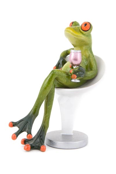 If You Gave This Frog Figurine a Title, It Would Have to be Just Chillin – This Cool Polystone Collectible Has a Green Frog with Long Legs Sitting in a Chair with a Glass of Wine