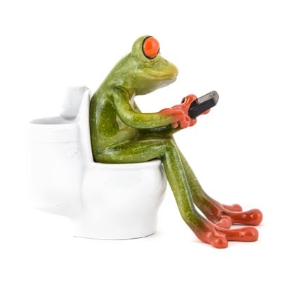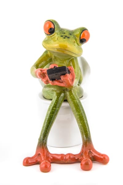 Some People and Some Frogs Just Don’t Know When to Put Down Their Electronic Devices – This Shiny Polystone Figurine Has Our Frog Sitting on a Toilet and Texting – It’s Absolutely Irresistible