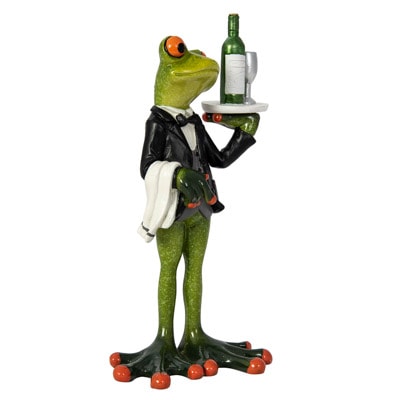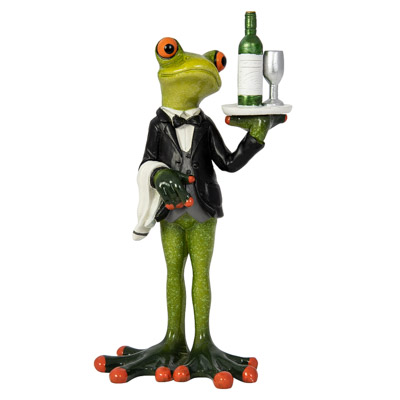 SALE – Here’s a Figurine of a Waiter or Sommelier That is a Frog Trying His Best to Look Dignified While Carrying a Wine Bottle and Glass on a Tray – Serve Up This Cute Gift Made of Polystone for a Wine Lover or Frog Collector