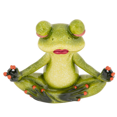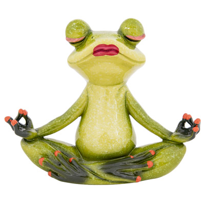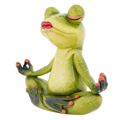 This Polystone Shiny Green Lady Frog With Bright Red Lipstick Has Her Eyes Closed and is Very Zen – She’s Practicing Yoga or Deep in Mediation Seated in a Lotus Pose Position – She’s Cute, She’s the Perfect Collectible for a Fan of Frogs, Yoga, or Transcendental Mediation