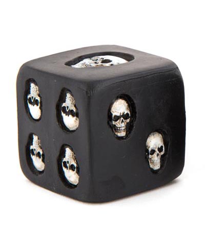 The Die is Cast…Cast Resin, that is, and It’s a Full 3″ Square – Instead of Dots for Numbers, This One has Skulls on Each Side, from One to Six – A Gothic Gift or a Pirate Present
