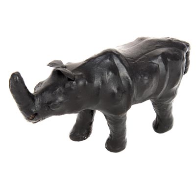 A Figurine of a Standing African Rhino – It’s Actually Covered with Real Leather for a Decorative Home Accessory – Colors Will Vary