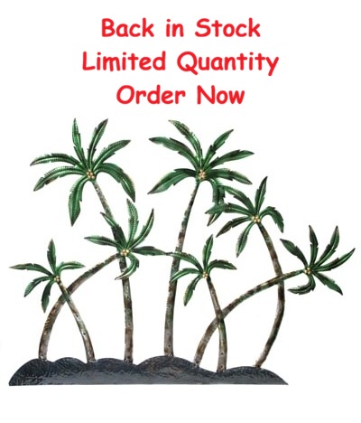 A Very Large Wall Hanging of a Grove of Seven Palm Trees – Wall Décor Made of All Metal – Bring a Tropical Landscape Indoors in Any Climate or Season or Accent the Walls of a Porch, Patio, or Sun Room or Any Where You Have a Big Wall to Decorate – Must Be Shipped On Truckline