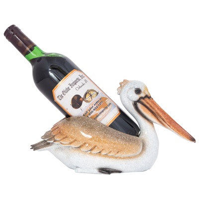 Here’s a Talented and Good-Looking Brown Pelican That Can Hold a Wine Bottle Nestled on His Back Between His Wings – Made of Polystone with the Look of Shiny Ceramic (Bottle Not Included)