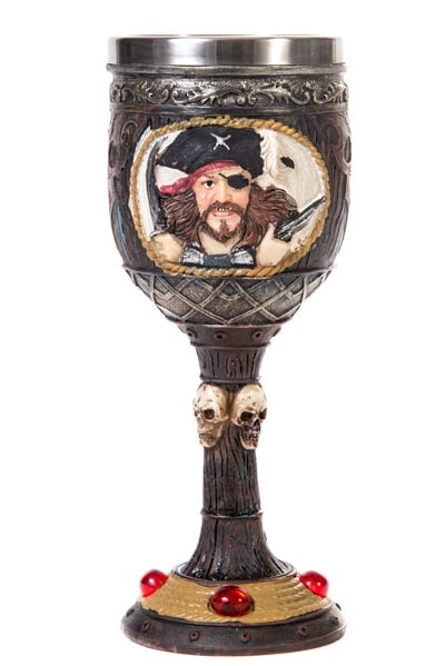 SALE – Shiver Me Timbers! A Real Drinking Goblet with a Pirate’s Bust on One Side and His Ship on the Other – Made of Cast Resin and Metal Lined