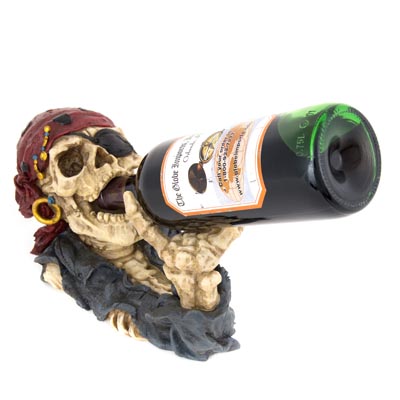 Yo, Ho, Ho, and a Bottle of Wine with This Buccaneer – He’s a Cast Resin Skull and Bones Pirate to Hold a Bottle of Wine Like He’s Drinking From the Bottle Itself – A Most Unique Bar Accessory or Gift – Shown With a Wine Bottle, Not Included
