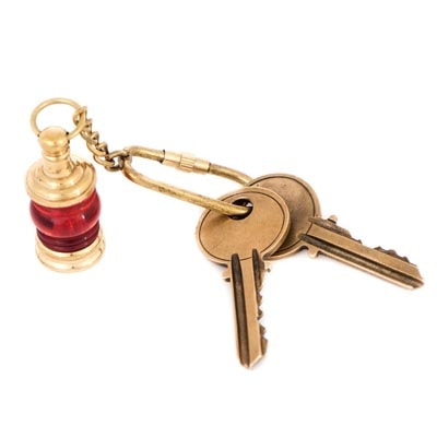 Nautical Brass Key Ring with a Red Port Lantern Hanging From the End – Cute Gift Item for Someone Who Loves Boating and Knows Their Way Around a Marina – Keys Shown Only for Display Here