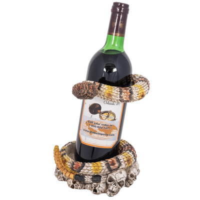 Now Here’s a Place to Put Bottle of Wine that Will Make Anyone Think Twice Before They Reach for a Sip – Made of Cast Resin, It’s a Realistic Rattlesnake Poised Ready to Strike Coiled On Top of Skulls – Bottle Not Included