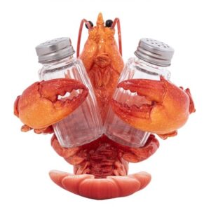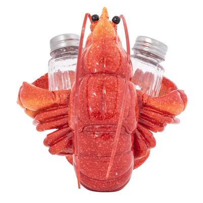 Tucked Under the Claws of this Polystone Red Lobster is a Pair of Salt & Pepper Shakers – A Decorative Item for a Seaside Kitchen That’s Useful, too – Yummy Accent on the Counter or Tabletop That Just Might Make You Hungry for Seafood- The Set Comes with the Metal and Glass Salt & Pepper Shakers Shown