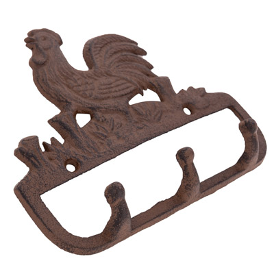 Lovely Antique-Looking Country Kitchen Wall Decoration that Gives You a Place to Hang Utensils, Aprons, and Pot Holders – Made of  Cast Iron with a Rooster on Top and Three Substantial Hooks at the Bottom