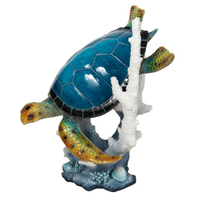 This Large Decorative Statuary is of a Blue Swimming Sea Turtle at a Coral Branch and is Made of Polystone with Great Detailing – Notice the Shiny Sea Turtle’s Shell and the Incredible Texture of the Coral Reef in This Show-Stopping Coastal Accent