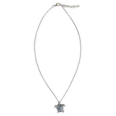 This Attractive Necklace is a Great Fashion Accessory – It’s Silver-Colored Metal With an Aqua-Colored Sea Turtle Pendant With Rhinestones