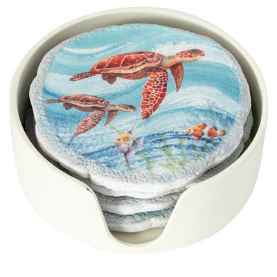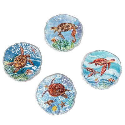 4 1/4 Inches Wide Sea Turtles Coaster Set