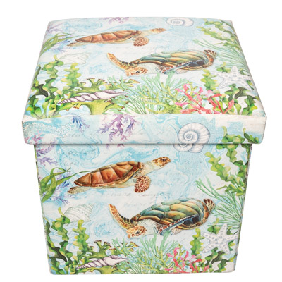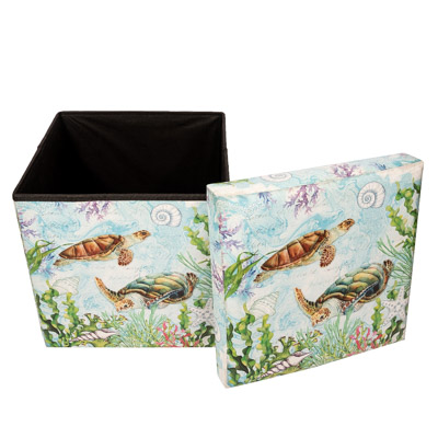 Here’s a Decorative Furniture Accessory That’s Also Practical – It’s a Useful Place to Hide Things Out of Sight and, If Not Needed, It Will Fold Up Flat – Leatherette-Covered Storage Cube has a Pretty Design of Sea Turtles Swimming Underwater on All Sides and the Lid