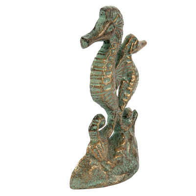 Two Seahorses Will Noblely Hold the Door Open – They are Made of Cast Iron and are Nicely Finished with a Verdigris Patina Accented With Gold Highlights – Could be a Bookend or Just a Splendid Decoration in a Coastal or Nautical Themed Room