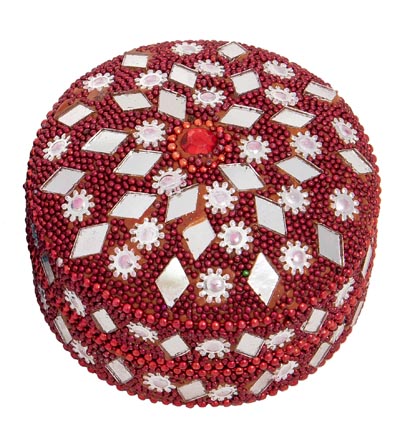 Set of Three Sparkly Decorative Vivid Red Trinket Boxes – Made of Metal and Covered with Beads, Sequins and Mirror Tiles in White and Silver Colors