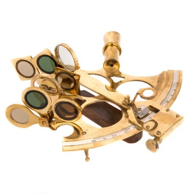 Nautical Reproduction of Navigational Sextant that Really Can Be Used – It’s Made of Brass and Comes in Hinged Wood Case with Inlaid Brass Anchor Design on Lid – Perfect Gift for Sailor or Seaman or Just as a Nautical Decorative Accent Piece