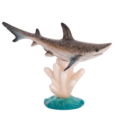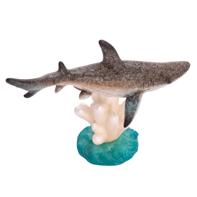 Here’s a Decorative Accessory Made of Beautiful Polystone for Marine Life Lovers – There’s a Shiny Enamel Finish Shark Above a Pearly Anemone Atop a Translucent Water-Like Base