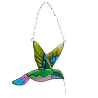 7 3/4 Inches High Stained Glass Hummingbird
