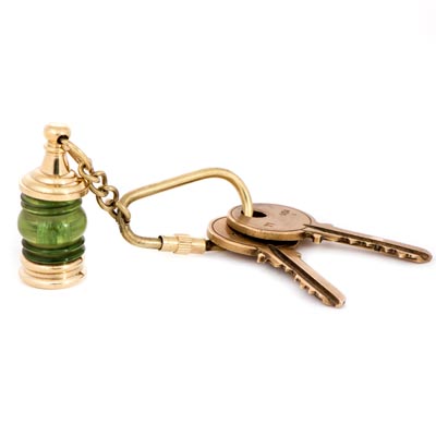 A Green Starboard Lantern Hangs From this Nautical Brass Key Ring – Make a Charming Gift Item For a Boater So He or She Can Find Where They Docked Their Keys – Keys Shown Only for Display Here