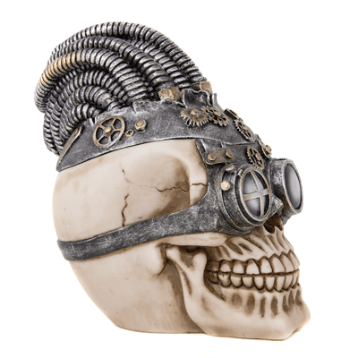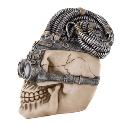 Here’s a Steampunk Skull That’s is Also a Storage Jar and Having an Empty Head is a Plus In This Case – From Creative Imagination Drawn from Steam-Powered Industrial Machinery of the Victorian Era, It’s What the Past Would Look Like if the Future Had Happened Sooner Describes Steampunk Style