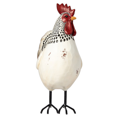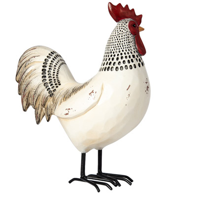 Add a Touch of the Country with this Decorative Rooster Figurine – He’s a Marvelous Sight to Behold – Those Dramatic Sickle Feathers in His Tail, Red Comb, and Stylized Rustic Finish are Something to Crow About – Body Made of Polystone with Metal Feet