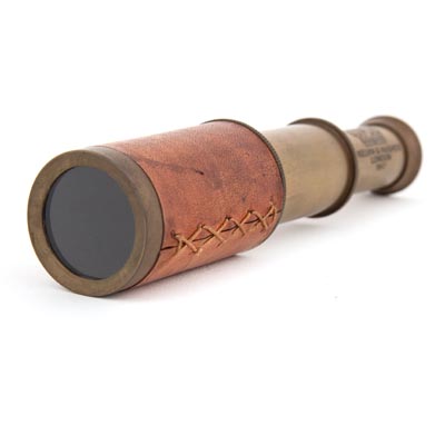 Made to Look Old, This Antiqued Brass Useable Telescope has Leather Covered Grip and Matching Leather Carrying Case – A Nice Yesteryear Reproduction Piece that Functions Today as a Gift, Keepsake, or Decorative Item