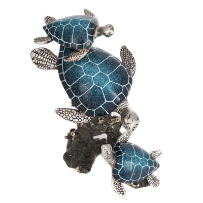 Very Artistic Figurine of Three Sea Turtles Swimming On a Coral Reef Base – Made of Polystone in Shades of Bronze, Silver, and Royal Pacific Blue, It’s a Dramatic Decorative Accessory for Any Decor