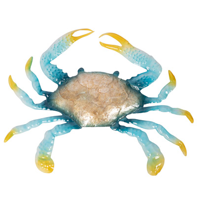 Hang This Metal Crab to Decorate the Wall in a Seafood Restaurant, Coastal Home, or Beachside Patio – Accented With a Mother of Pearl Finished Body and Aqua and Yellow Color Highlights on the Claws and Legs, It’s a Great Catch