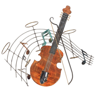 Beautiful and Functional Metal Wall Hanging for Anyone Who Appreciates Classical Music and Fine Wine – There’s a Violin and Bow With a Lively Staff of Musical Notes Behind It – Wall Art With a Rich Lustrous Satin Finish With a Place for Holding Three Wine Bottles (Not Included) and There’s Even a Spot to Hang and Hold Stemmed Glasses